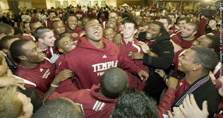 received my season tickets via FEDEX today…I'm stoked! three take-a ways:(1) the TEMPLE on the helmet stands out in all seven photos; (2) how many top 20 programs in America feature seven of their top players in photos and the QB is not one of the seven?(3) we really do have seven home games this year. when was the last time that happened, or is this a Temple first?