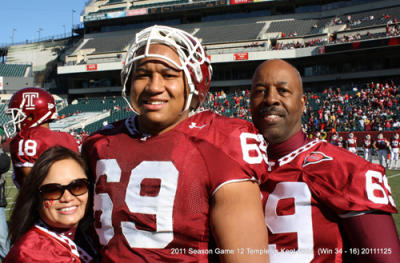 The Mom Factor _ Watching all the moms with their sons on Friday, I thought it would be great if Tammy Pierce would be escorted onto the field by Bernard Pierce for the Senior Day ceremony next year. Tammy has been Bernard’s No. 1 fan since Day One. She deserves that day in front of a packed house next year. (And it will be a packed house. Paul Palmer drew over 40,000 to crappy Veterans Stadium for his final home game.)  I met her in the concourse at the Miami game and, without knowing who she was, she said to me: “Nice to meet, you, I’m Bernard Pierce’s mom.” I stood there with my mouth open for about five seconds before thinking of something to say. “He’s my favorite player, I love him,” I said (nothing kinky, of course just like a proud adopted uncle). Tammy said, “Well, we do, too.” There’s a lot more people at Temple who love him than in the NFL. There is no agent out there who loves him like we do.