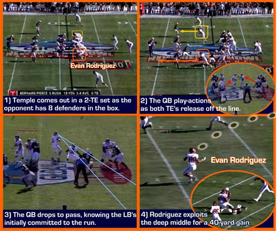 Egad, passes on first down, a waggle to a talented tight end to open things up for an NFL running back.