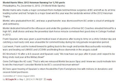 His exploits are well-documented on this website. Had he remained at Boston College, he would have been the all-time leading rusher in the history of the Atlantic Coast Conference. That’s a conference that includes Florida State, Miami (Fla.), Virginia Tech and Georgia Tech, among other storied football schools.