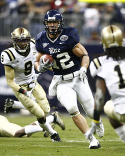 Not sure whether or not you’re going to like this idea, but I think if you want to show Coyer’s versatility, you have to put him in at the Wildcat. He needs a little bit of open space and momentum and the fullback positon is too close to the line of scrimmage, in my opinion. Also, I just don’t think he has the speed to get around the corner on reverses (it hasn’t worked with guys like Fitzpatrick and it hardly ever worked with Delano Green, and they were much faster.) If you insist that he is a triple threat, I think the wildcat offers enough deception and more promise. Also, I’ve researched James Casey a little, and the guy was an elite athlete, and although he did practice as a quarterback his freshman year (he was a pro pitching prospect), he played almost primarlily as a WR (111 rec. for 1300 yds in 2008) and because of his size he migrated to the TE position. Also he ran a sub 4.50 40. Antother guy that fit into this mold was Matt Jones from Arkansas. I guess Coyer can take cues from their book but I don’t think he’s on quite the same level athletically, he’s bulked up considerably for his role