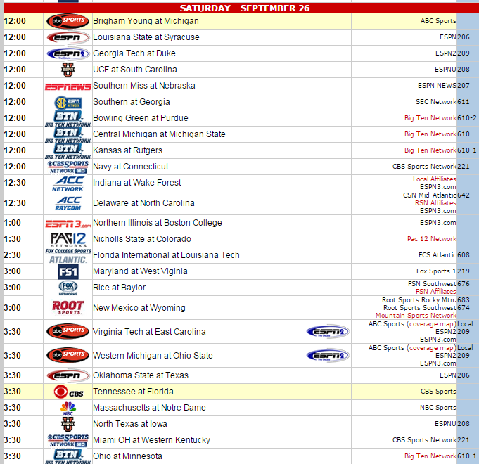 I’ll be the first to admit it. A Saturday without my beloved Temple Owls playing football is a Saturday without sunshine, but there are some good day games above. The UMass at Notre Dame game (3:30, PHL 17) should be a study in whether or not Brian Kelly allows the Minutemen to dictate whether or not he runs the ball. I think he’ll find a way, even if they put 20 in the box.. Got to figure that Mark Whipple will make the same gamble he made against Temple since ND has been without star quarterback Malik Zaire.