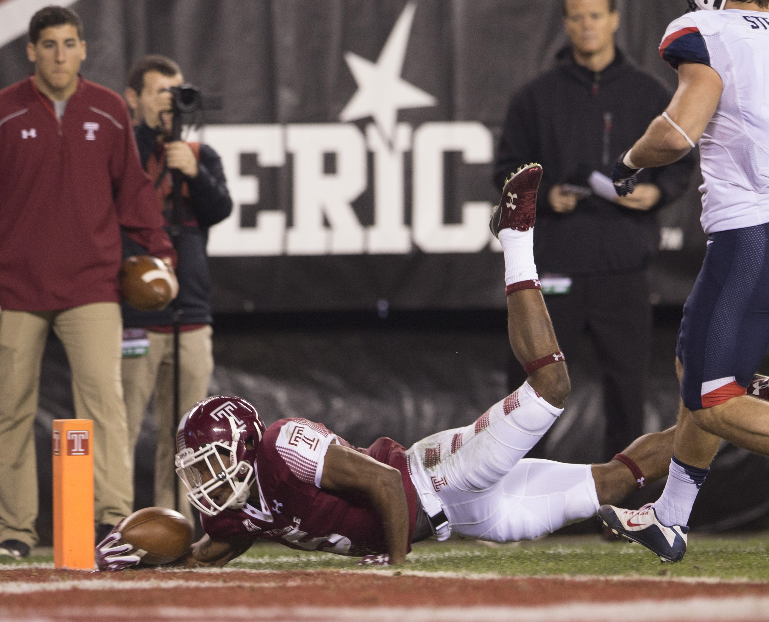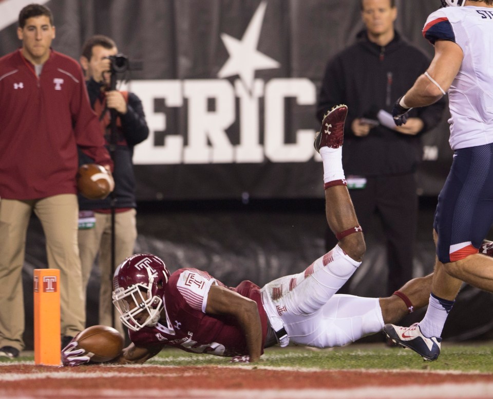 PHILADELPHIA, PA – NOVEMBER 28: Jahad Thomas #5 of the Temple Owls runs for a touchdown in the first quarter against the Connecticut Huskies on November 28, 2015 at Lincoln Financial Field in Philadelphia, Pennsylvania. (Photo by Mitchell Leff/Getty Images) *** Local Caption *** Jahad Thomas