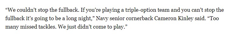 Here’s what Navy cornerback Cameron Kinley said about the loss: