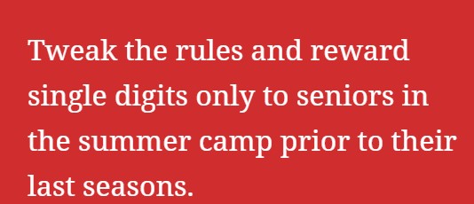 The way to do that would simply be to tweak the rules and reward single digits only to seniors in the summer camp prior to their last seasons.