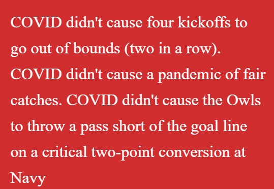 Mike, you are so right that this year is critical to keeping a fan base. Last year was tough to swallow. It was not covid, which was a factor later into the season, but the game planning and in particular that opening loss to Navy when we were supposedly the superior team. Getting pushed around and the play calling on both sides of the ball. I was not there, but I could read the disappointment from Harry and Paul in the radio broadcast. This lead to players we felt were the heart of the program leaving. This is my greatest concern. I know you wrote about this, but having a coaching staff that does not game plan around the talent they have worries me. I hope this year can be the reverse of last year for the program’s sake. Otherwise, my season ticket investment will be a challenge to renewal. Go Owls!