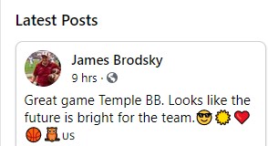 Michael A., Havertown, PA (thanks, Mike); 5/14/25 Anoymous (thanks, much appreciated) 4/25/25, David B., Delaware (owner of the most photogenic dog on the internet and someone who I and the late Phil M. had a great conversation with at the 2012 UConn game… can’t believe how time flies, thanks, Dave!!! will definitely meet up again at the next Temple at Delaware game); Matt P. (former Temple player under Al Golden), 4/21/2025 (thanks, Matt, could not have come at a better time because we have a bill for this site coming 4/30 and did not know how we were going to pay it); Brian, Philadelphia (thanks, Brian for being a long-time reader, sorry I missed you at C&W this year) 4/15/25; Ed S., New Hope, PA (4/6/25; thanks Ed, our first donation in nearly two months);