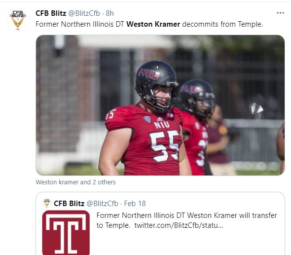 The All-MAC tackle decided on Feb. 18 to commit to Temple and then, a little over a month later, de-committed from that commitment, according to the twitter handle CFB Blitz.