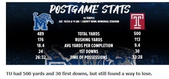 Memphis is not as good as Rutgers nor it is as good as Boston College. Lock down the special teams, do not defer the opening kickoff, and the Owls have a chance to compete. Down the ball, pick it up and hand it to the ref on punts.