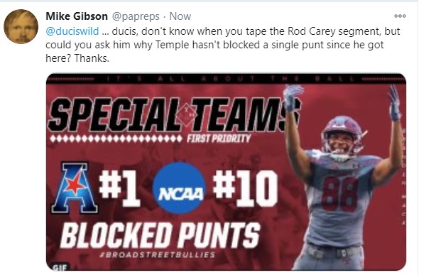 Temple fans deserve to have a kind of team that locks down the “most easy” of the three phases of the game and Rod Carey in his capacity as CEO has failed to do that nor has he shown any interest in fixing it. Special teams are 1/3d of the game. Carey thinks they are 1/10th.