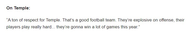 • One of the reasons why Temple’s new leadership can’t do the same thing Temple’s old leadership was known for doing: Nothing. Losing recruits now. Wouldn’t be surprised if the portal gets active in the next couple of weeks as well.