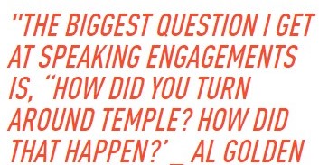 In a business where winning comes first and the bottom line comes next, there’s no one who fulfills those requirements for Temple more than Al Golden.