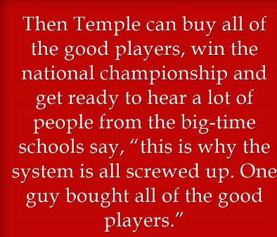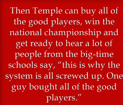 Then Temple can buy all of the good players, win the national championship and get ready to hear a lot of people from the big-time schools say, “this is why the system is all screwed up. One guy bought all of the good players.”