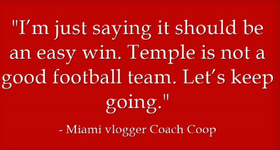 The respect doesn’t extend as far south as Miami, which has a number of fan Youtube channels. The No.1 from a subscriber perspective channel is “Coach Coop” and he dismissed Temple out of hand with his preseason rundown of the Miami schedule last week.