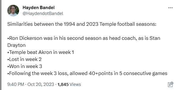 This is almost a carbon copy of the 1994 Temple season and that’s historically bad.