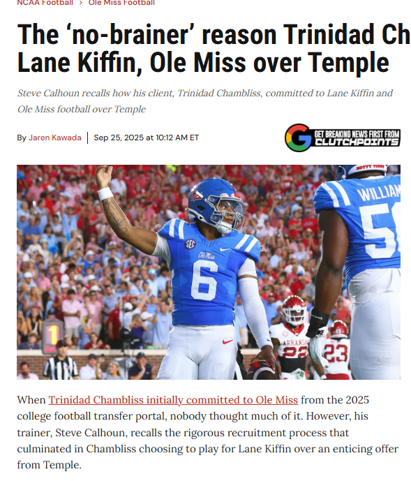 They were excited to get Chambliss and Chambliss was excited to come here before Ole Miss swooped in and got him.
