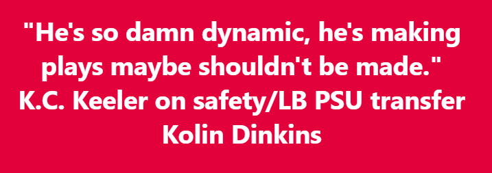 Now the Temple coaching staff found the sweet spot for Dinkins, a hybrid LB/safety position and Dinkins has proven virtually unblockable on QB blitzes. This is what head coach K.C. Keeler has said about Dinkins:
