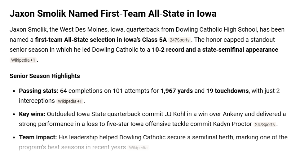According to our research, Jaxon Smolik will be the first player from Iowa in the 134-yard football history of Temple to play here. Might as well get the first-team All-State QB.