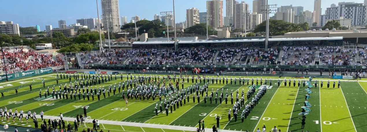 Took this photo from my seat. The nice blonde lady in front of me is the mother of Tulane kicker Pat Durkin, who went 5-for-5. This is what 13,336 fans look like in a 70K stadium. Below, this is what the same number of fans look like in Hawaii’s 15,000-seat stadium. Nobody from the mainland makes snide remarks asking about only 1,000 people at the Hawaii game.
