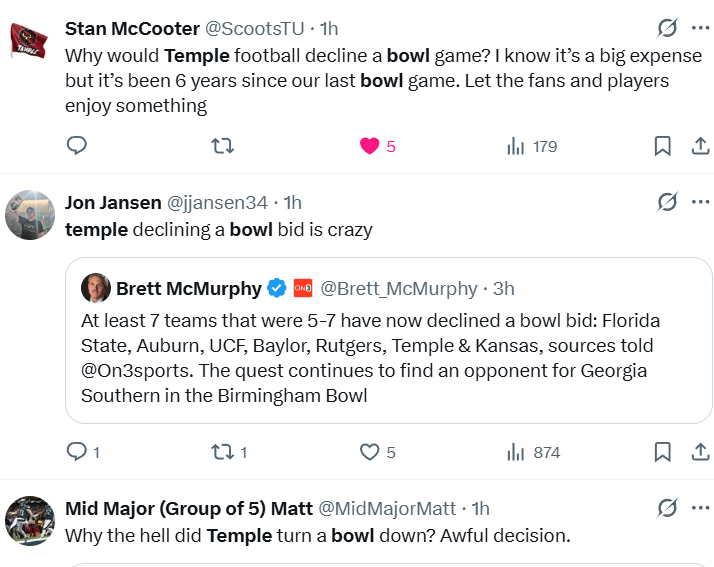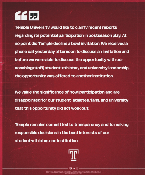 After almost a full week since Temple got gift-wrapped a bowl bid and hemmed and hawed and fumbled it away, fans deserve an answer.