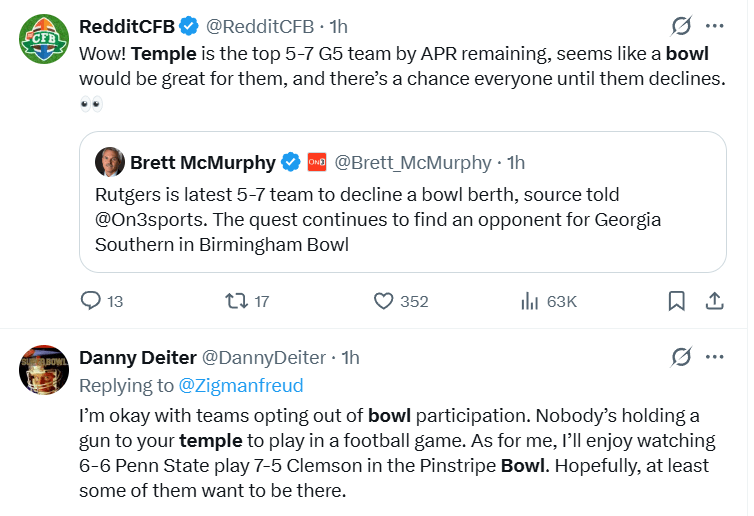 Reading between the lines, here’s what probably happened: The Birmingham Bowl went down the Rolodex of eligible teams and asked each one for a “yes” or a “no” and moved on from on from the ones who gave a “no” and a “maybe” until they could get to a yes.