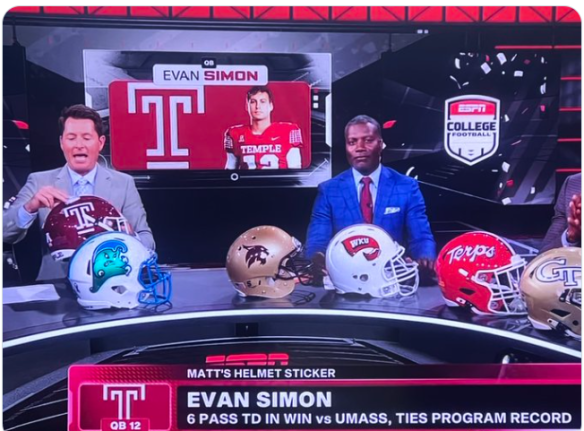 This is the only Temple helmet ESPN Gameday allows on the set.