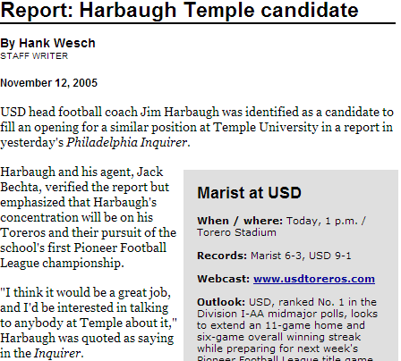 Jim Harbaugh’s Temple connection: