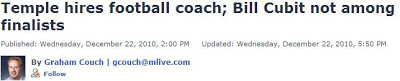 The latest news is that Temple fans may have to wait until next week to learn of a new coach.