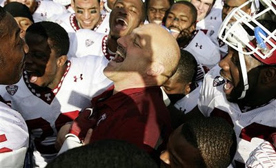 He had a Heisman Trophy back (at least, talent-wise if not durability-wise) in Bernard Pierce, great wide receivers in Rod Streater, Michael Campbell, Joey Jones, an all-MAC first-team tight end in Evan Rodriguez and a capable backup in Alex Jackson … and … AND …a New Jersey high school first-team all-state quarterback in Mike Gerardi … and … AND … an offensive line that averaged 318 yards across the front.