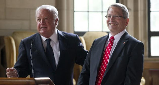 Board of Trustees chairman Pat  O’Connor introduces Neil  Theobald.