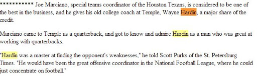 In his day, there was no better offensive mind than Hardin. That wasn’t me saying it. It was guys like Tom Landry, Joe Marciano (see quote at bottom of this story) and Joe Paterno.