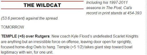 New York Post picks Temple to beat RU in Friday paper.