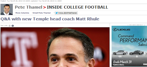 He was “National Recruiter of the Year” not once but three times and I thought this was just the kind of guy Temple needed. I could easily envision a recruit putting down Penn State hat, an Alabama hat and putting on a Temple one on ESPNU under Addazio’s watch (if you don’t think that’s possible, the same thing happened for a New Mexico football recruit two years ago).
