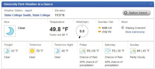While the rain won’t be coming into Philadelphia until dinner time, it should be at Penn State by kickoff.