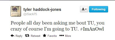 Great to see this tweet yesterday from one of TU’s  top-rated  recruits.