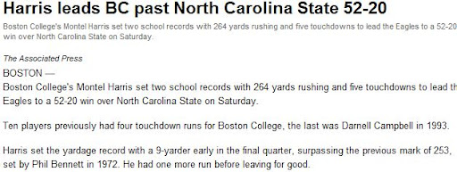 IF Harris comes, and that’s still a big if as of this minute, he will come with Pierce-like credentials. In fact, Harris is the second-leading all-time rusher in the history of Boston College and that’s impressive in itself. He would have entered this season as a prohibitive favorite to break Ted Brown’s ACC career rushing record that stood since 1979. Harris came into the 2011 season as the ACC’s preseason Player of the Year, but obtained a medical redshirt after hurting his knee in the first game.