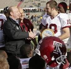 I also have to give the 500 Temple fans who made the trip to Maryland last year a lot of credit. Whenever I started a “Let’s Go TEM-PLE” cheer, all 500 joined in and the people who watched at home on TV said they heard every one. Temple’s Adrian Robinson even pointed to us and blew us a kiss and bowed a nod of thanks after he recorded a sack. The kids on the field heard us. Even the Maryland fans were giving us a “geez, Temple fans are loud” look. By halftime, we were the only fans left in the stadium.