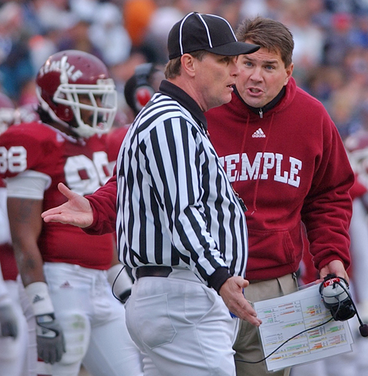 3. Four (4) _ Number of touchdowns the Owls left on the field against Penn State. I reviewed the tape twice. This is what I found. There was no holding (but there was a call) against Alex Derenthal, a call that negated a great touchdown catch by D’yonne Crudup. There is a photo of Al Golden arguing that call accompanying this story and he didn’t even need to see the tape twice. Alex Joseph and Omar McDonough-Hales dropped interceptions with no one in front of them except non-athletic Penn State quarterback Anthony Morelli. And who knows what would have happened if the Owls went for a touchdown on their first drive of the game, instead of a 23-yard shanked field goal. It was 31-0, but could have easily been closer. A lot closer. Golden is taking all of those Owls to State College with one Mantra: Making those plays this time.