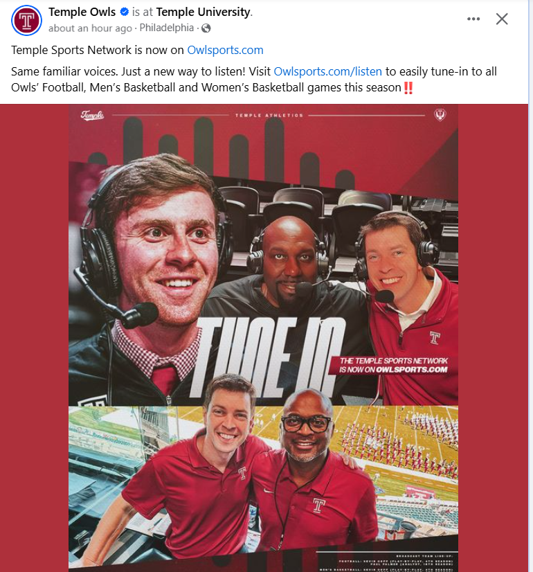 The PR release in question was that Temple was announcing an “exciting” new format for broadcasting its major sports games and nowhere in that release did the university include terrestrial radio in its plan.