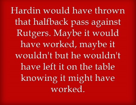 Hardin would have thrown that halfback pass against Rutgers. Maybe it would have worked, maybe it wouldn’t but he wouldn’t have left it on the table knowing it might have worked.