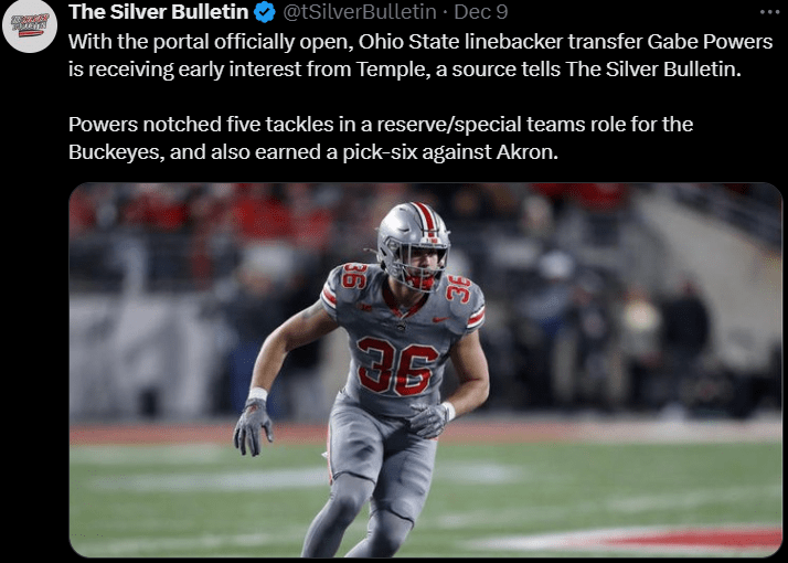 Since then, Keeler has gotten to work revamping the coaching staff and making strides to do the same with the roster. Temple is the only team mentioned for a backup Ohio State linebacker who returned a pick six for a touchdown three months ago against Akron.