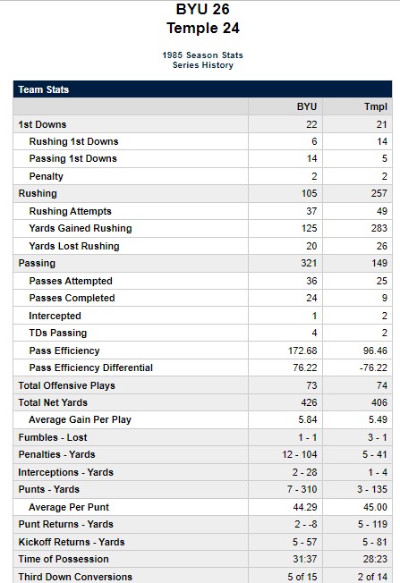 BYU knew it was in a game as it had 22 first downs to 21 for Temple.