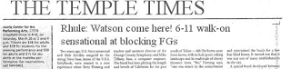 At least in the science of sport according to a report in this morning’s Temple Times.