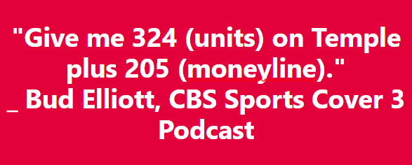 Bud Elliott of CBS Sports “The Cover Three” Podcast picked Temple OUTRIGHT on the Moneyline.