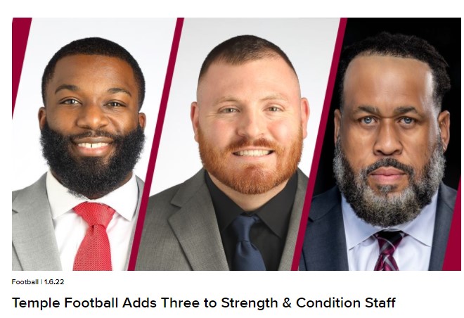 On the plus side of this mixed bag also are the strength coaches, Chris Fenelon (Ohio State), Andrew Broocks and Bruce Johnson. Carey’s strength coach is still being investigated for mental and physical abuse of players by an internal Temple probe. Hopefully, these new guys earn the trust and love of the Temple players, who were completely pushed around in a 3-9 season.