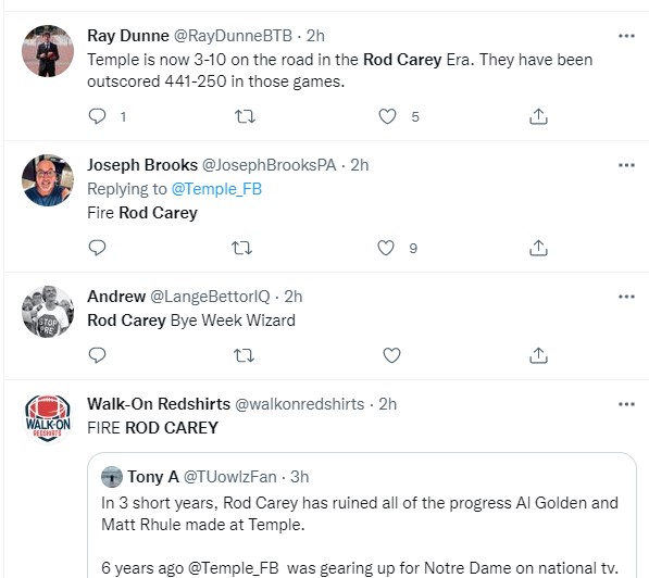 Fire Rod Carey no later than Monday. If you can get into the office on Sunday, that would even be better. I don’t speak for my 300,000 fellow Temple alumni nor the 40,000 current full-time students or 12,500 employees but I’m confident the great majority agree with me today.