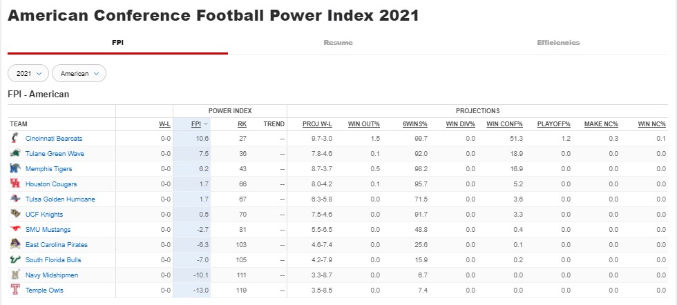 Temple is No. 1 both in the AAC and all of G5 football in terms of transfers out via the portal (15) and No. 119 in terms of ESPN’s 2021 Power College Football Index. The network has the Owls finishing dead last in the AAC.