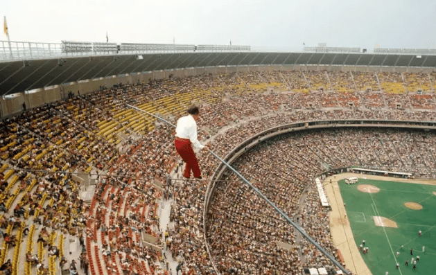 Those of a certain age in Philadelphia sports remember the biggest literal balancing act in history, Karl Wallenda, who walked across the top of Veterans Stadium on a high wire without a net.