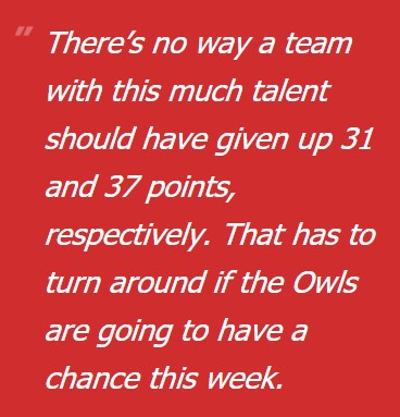 There’s no way a team with this much talent should have given up 31 and 37 points, respectively. That has to turn around if the Owls are going to have a chance this week.