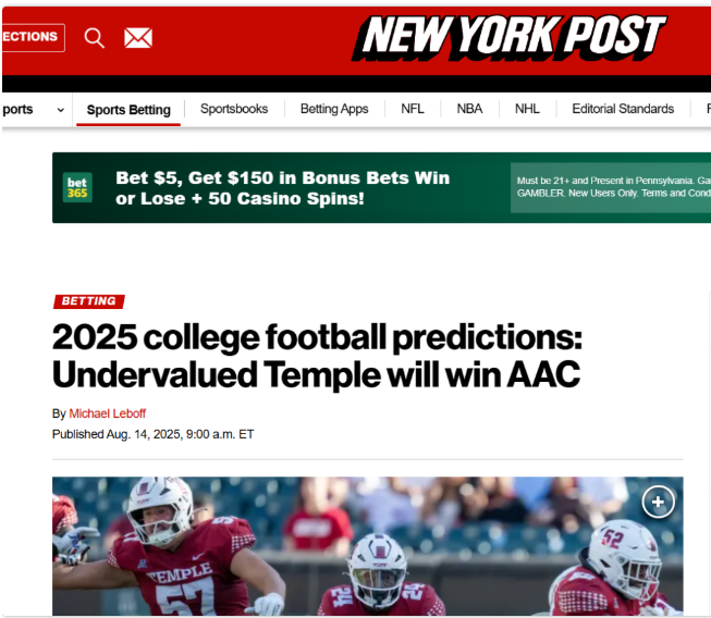 Not all the assembled media raised eyebrows because a New York Post guy named Michael Leboff was buying Temple stock when it was low back on Aug. 14, predicting in the paper that the Owls would win the title.